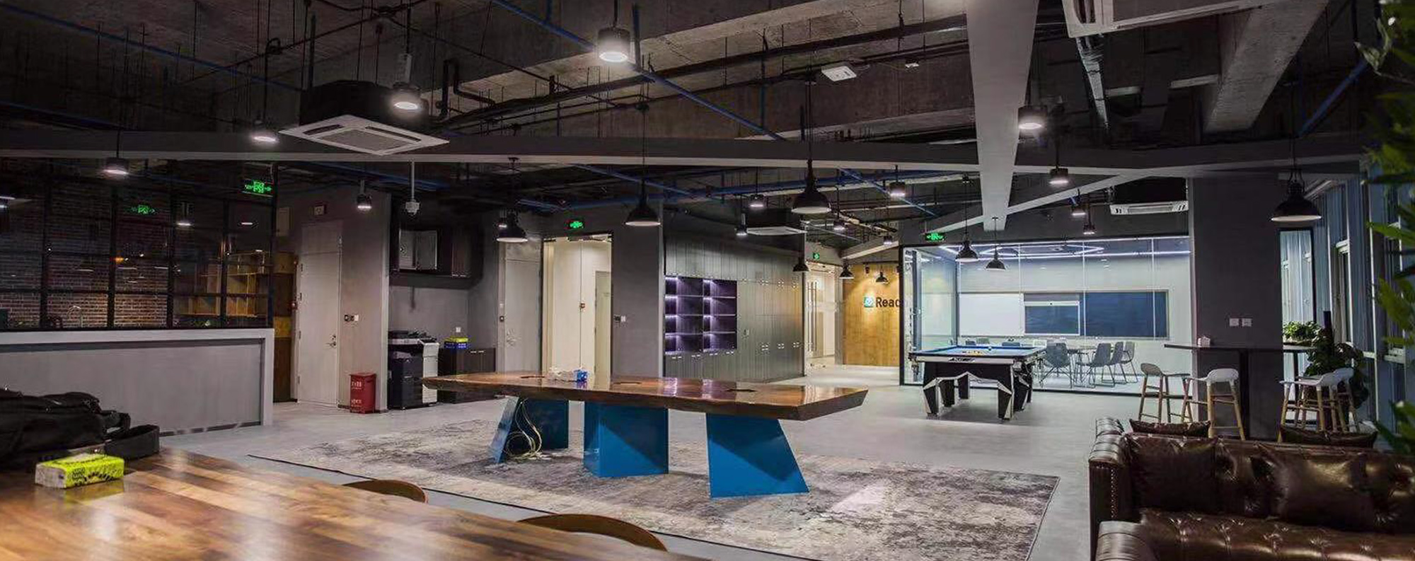 项目描述: 我们的设计意在打造一种现代而又具有工业感的视觉和调性,其灵感来源于客户的业务领域——工程业务。为了重建工业风的空间环境,我们大量应用了具有原生感的材质,如原木、混凝土等,将空间区分为两个不同的区域——面客区和常规工作区。